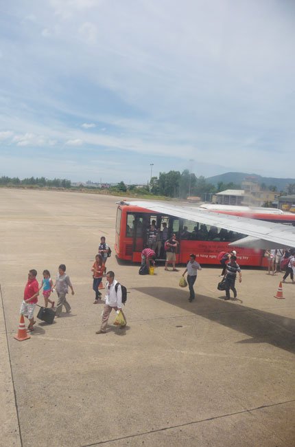 Hành khách xuống máy bay của Jetstar Pacific - Ảnh: Đào Loan